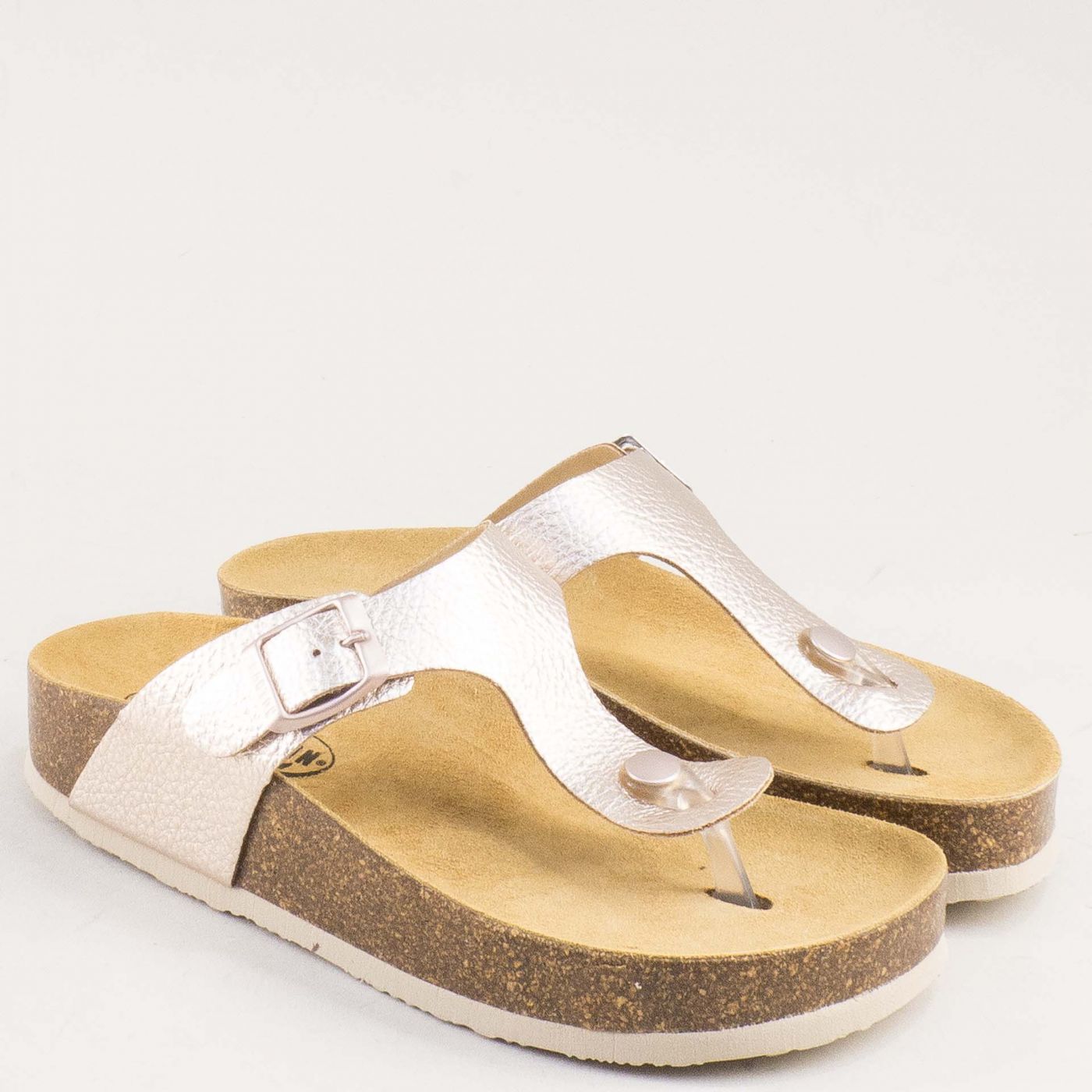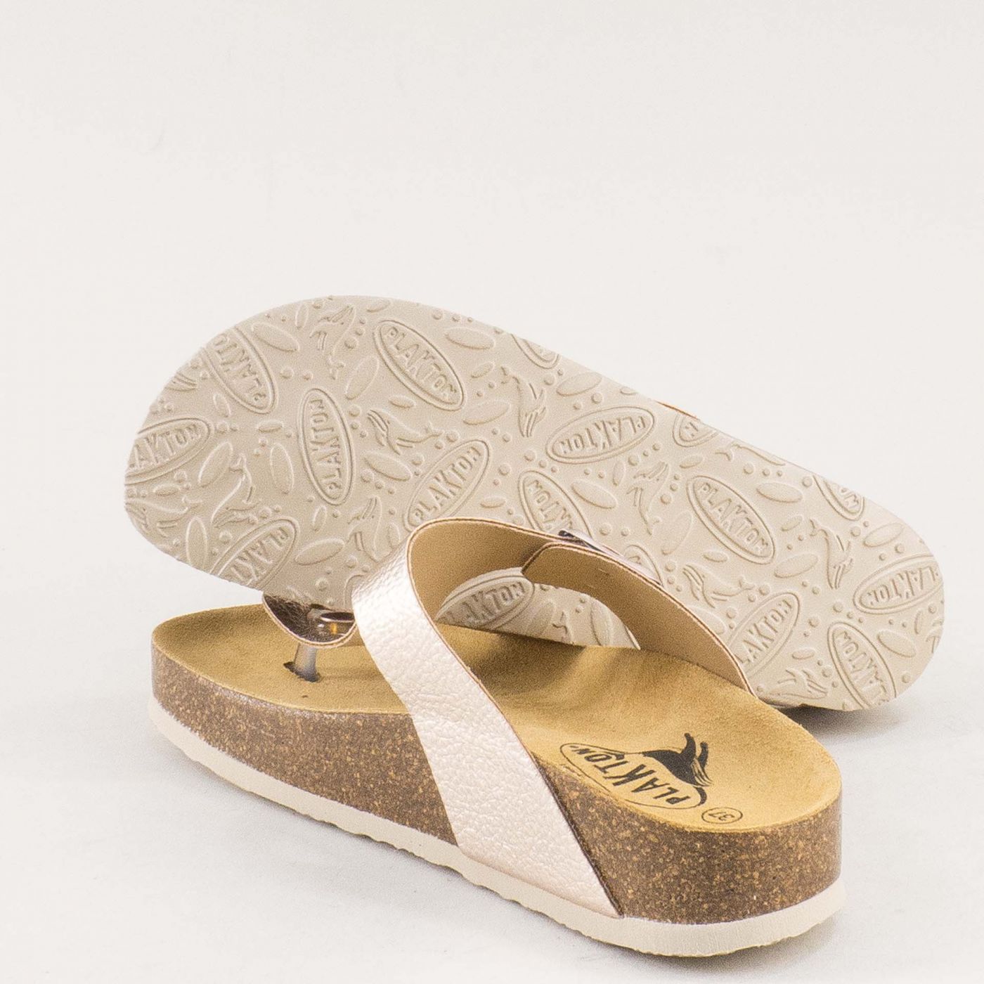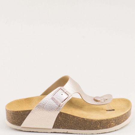 Златни дамски кожени чехли с розов блясък PLAKTON 341671rzzl