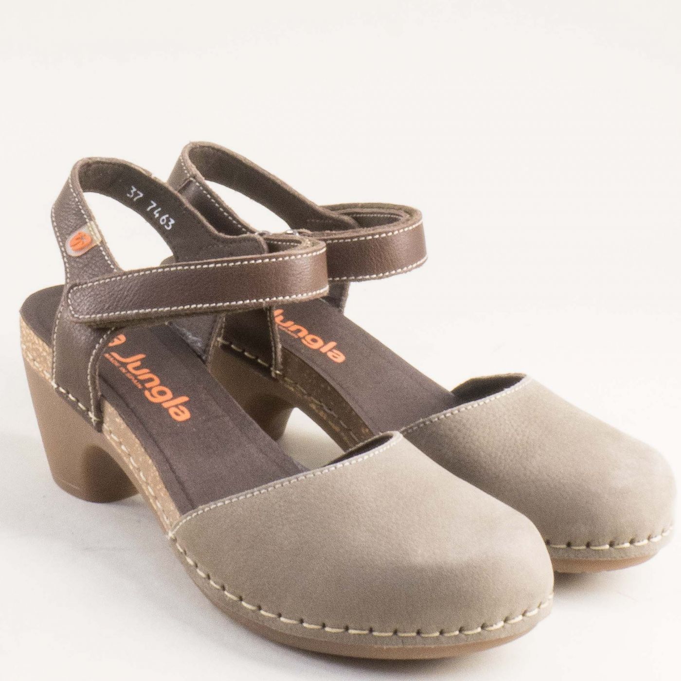 JUNGLA дамски сандали със затворени пръсти и отворена пета в бежово и кафяво 7463nsv