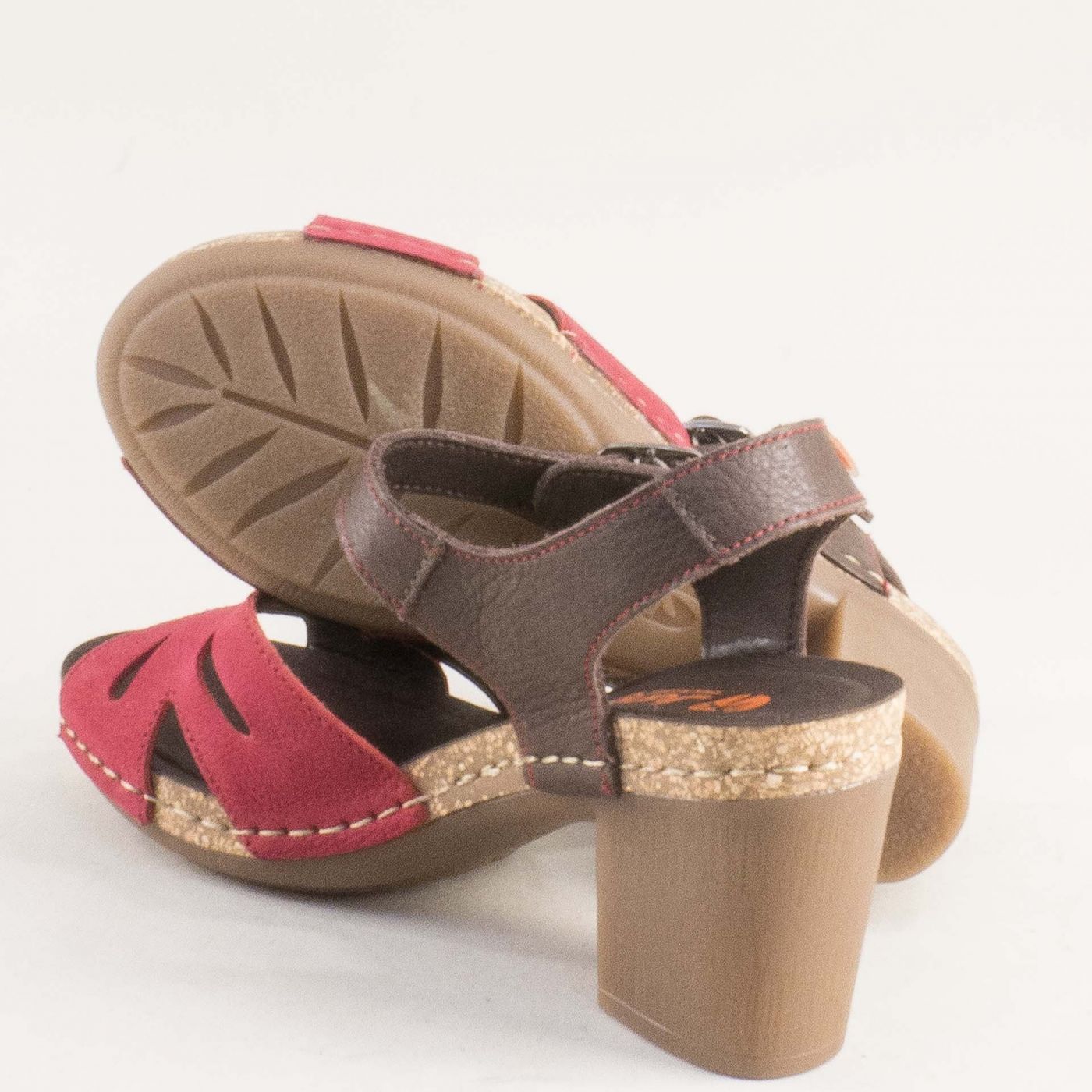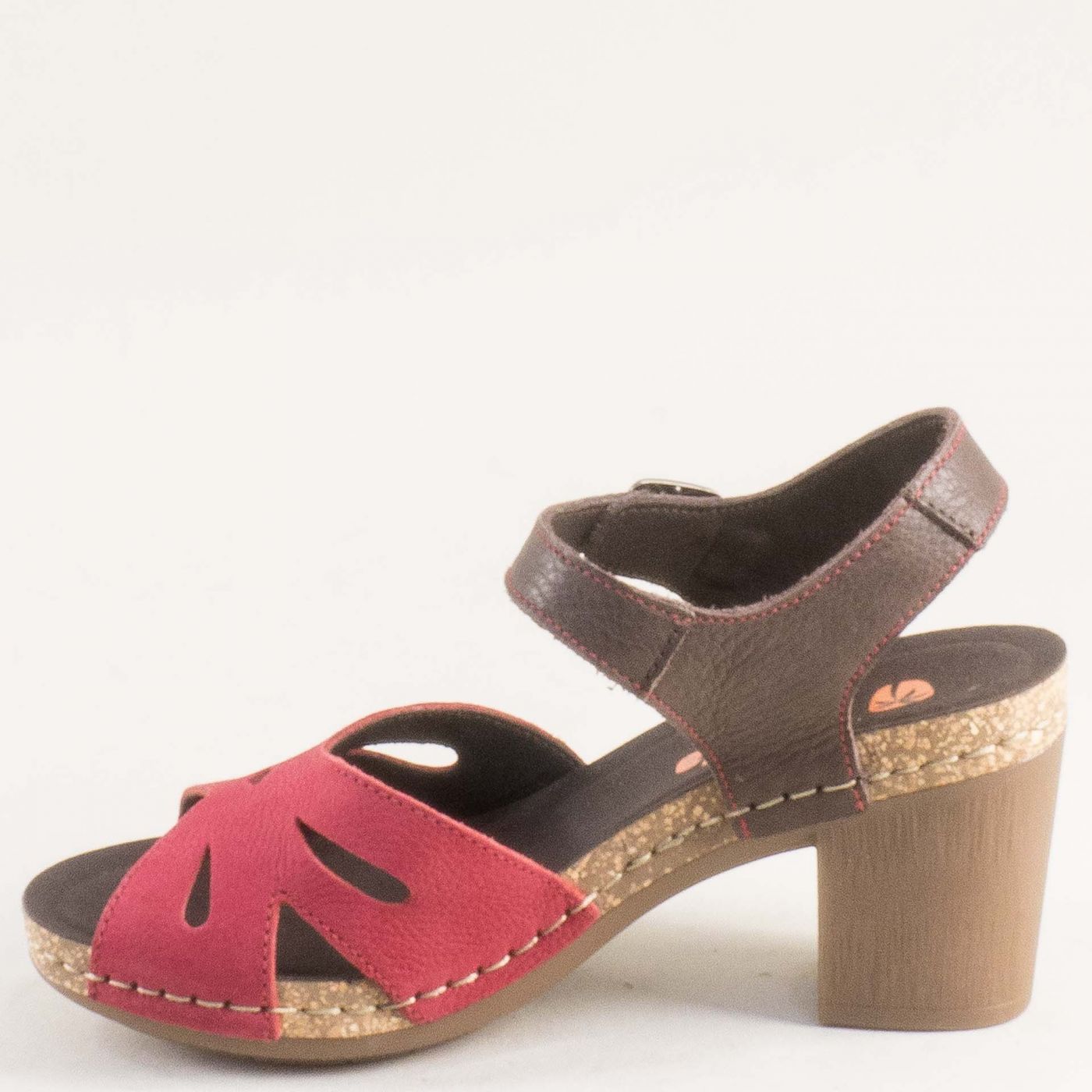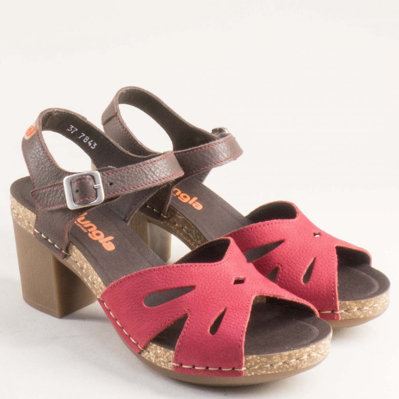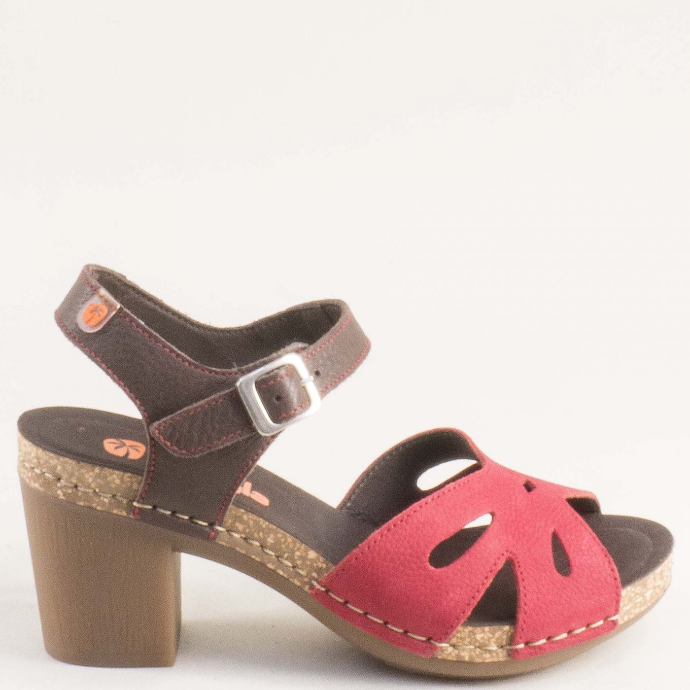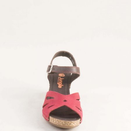 Стилни дамски сандали JUNGLA в модерен червен цвят с кафява декорация 7843kchv