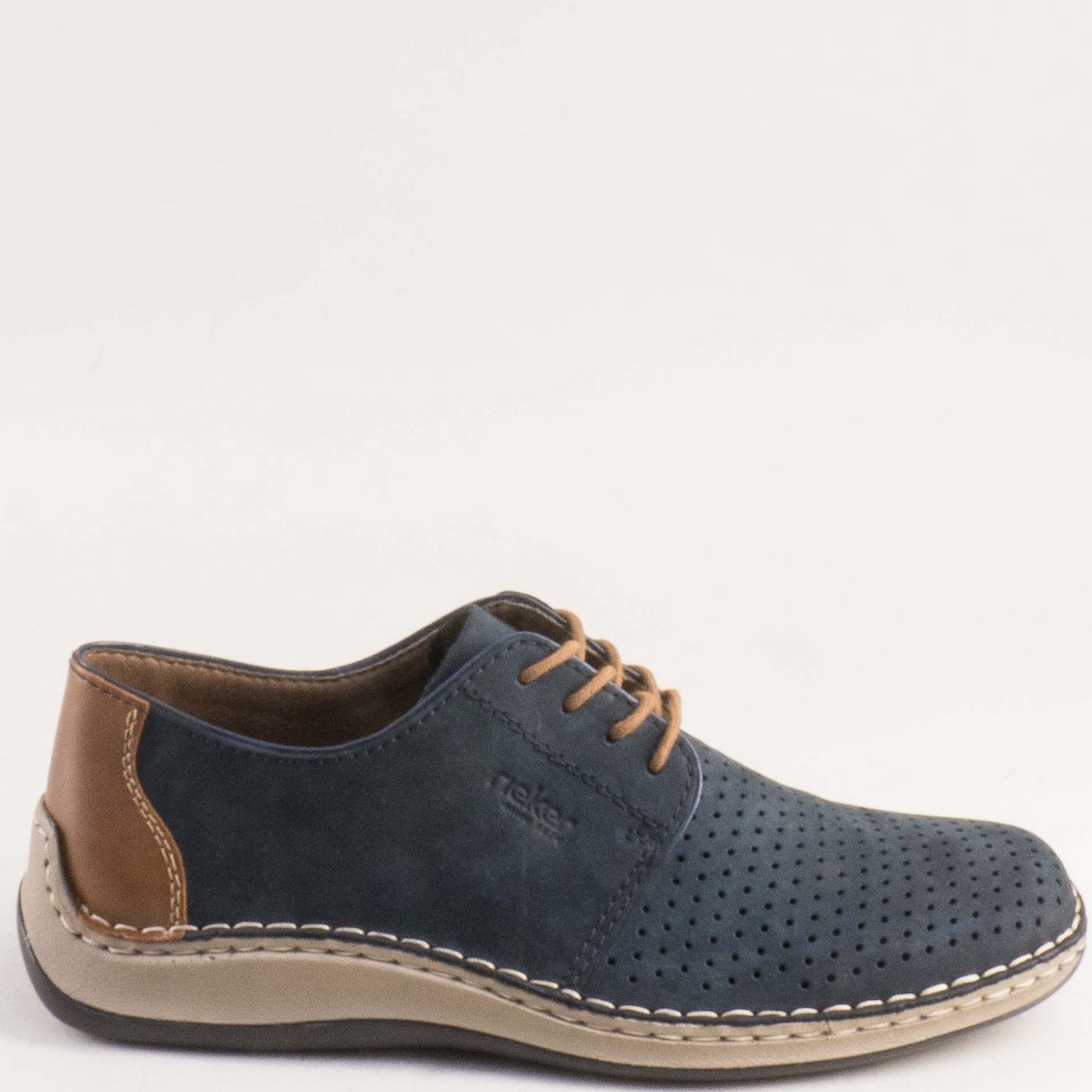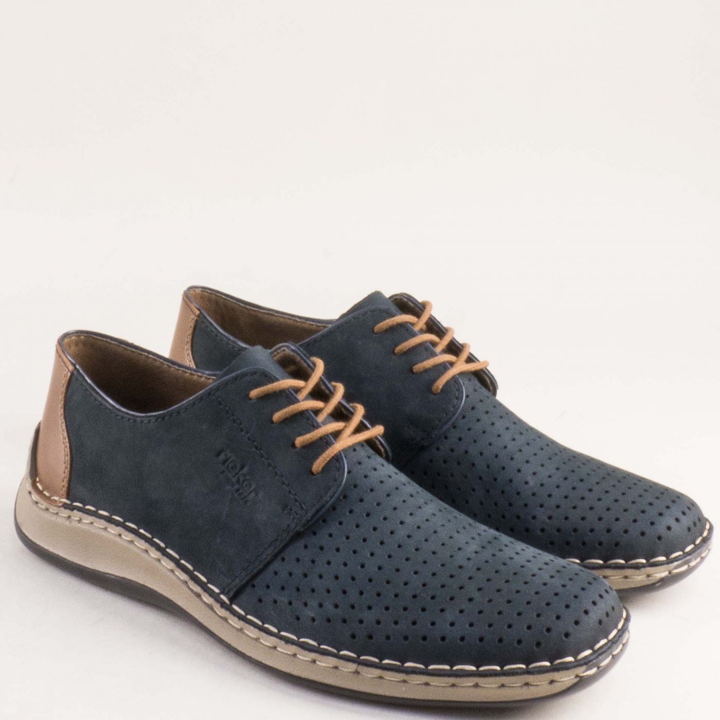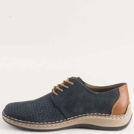 Естествен набук мъжки перфорирани обувки на антистрес ходило в син цвят 05226-14